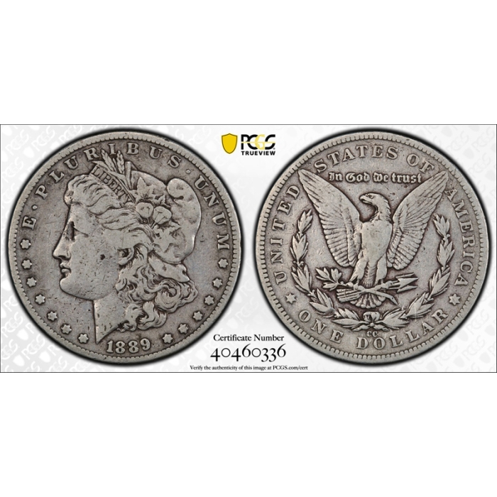 Description / 1889 CC $1 Morgan Dollar PCGS F 12 Carson City Mint Key Date Cert#0336