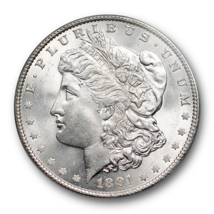 Description / 1891 $1 Morgan Dollar PCGS MS 64 Uncirculated Blast White CAC Approved Lustrous