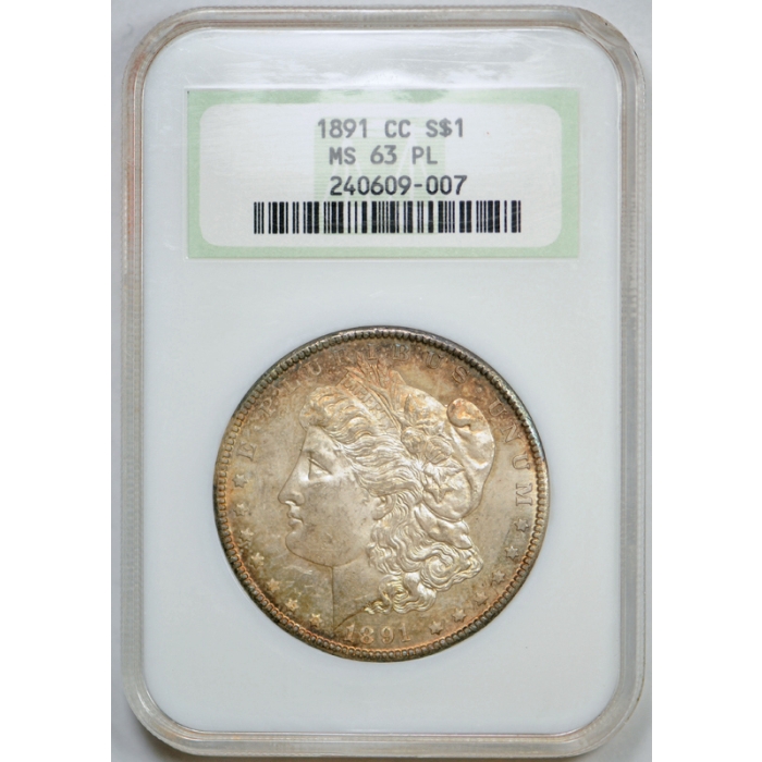 Description / 1891 CC $1 Morgan Dollar NGC MS 63 PL Uncirculated Proof Like Old Fatty Holder !