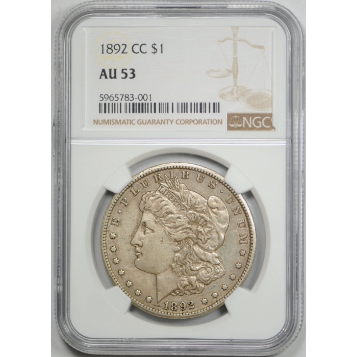 Description / 1892 CC $1 Morgan Dollar NGC AU 53 About Uncirculated Carson City Mint Tough Grade