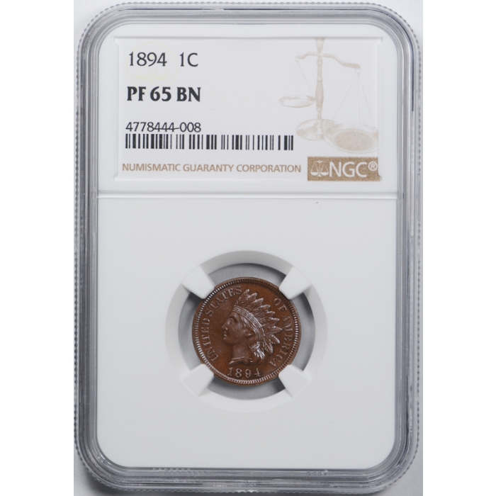 Description / 1894 1c Proof Indian Head Cent NGC PF 65 BN Uncirculated Toned Pretty !