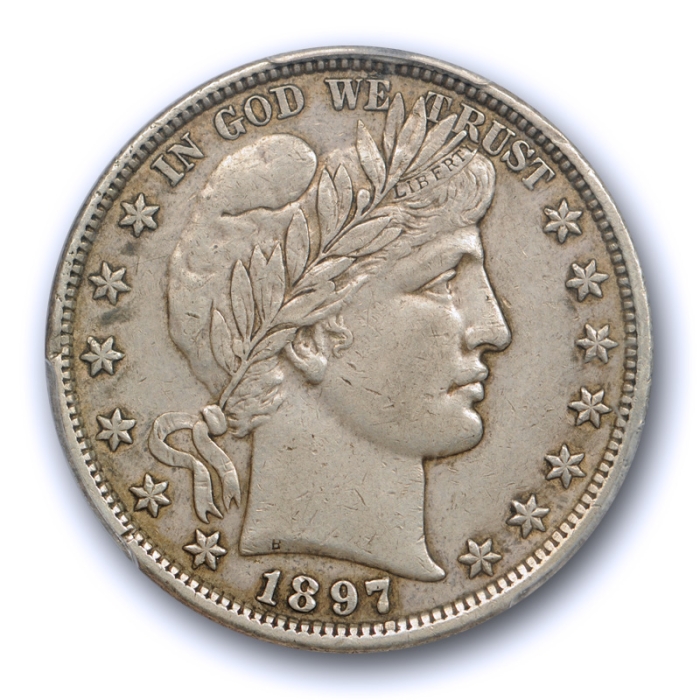 Description / 1897 50C Barber Half Dollar PCGS XF 45 Extra Fine to About Uncirculated Original