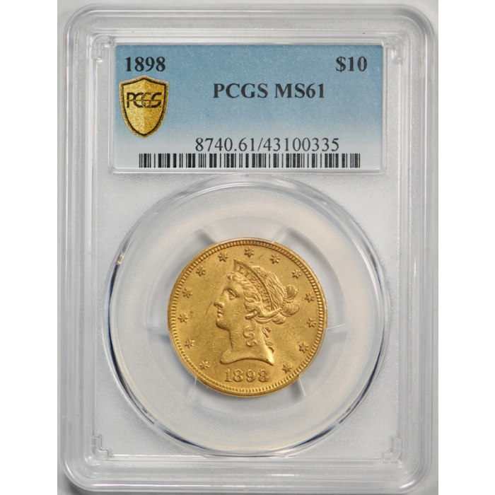 1898 $10 Liberty Head Eagle PCGS MS 61 Uncirculated Ten Dollar Gold Coin Original