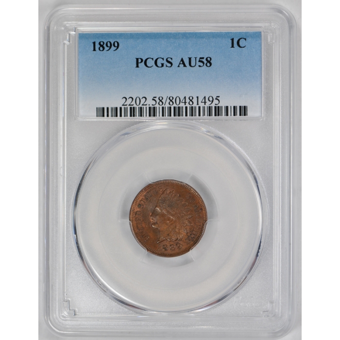 Description / 1899 1C Indian Head Cent PCGS AU 58 Registry Set Grade About Uncirculated