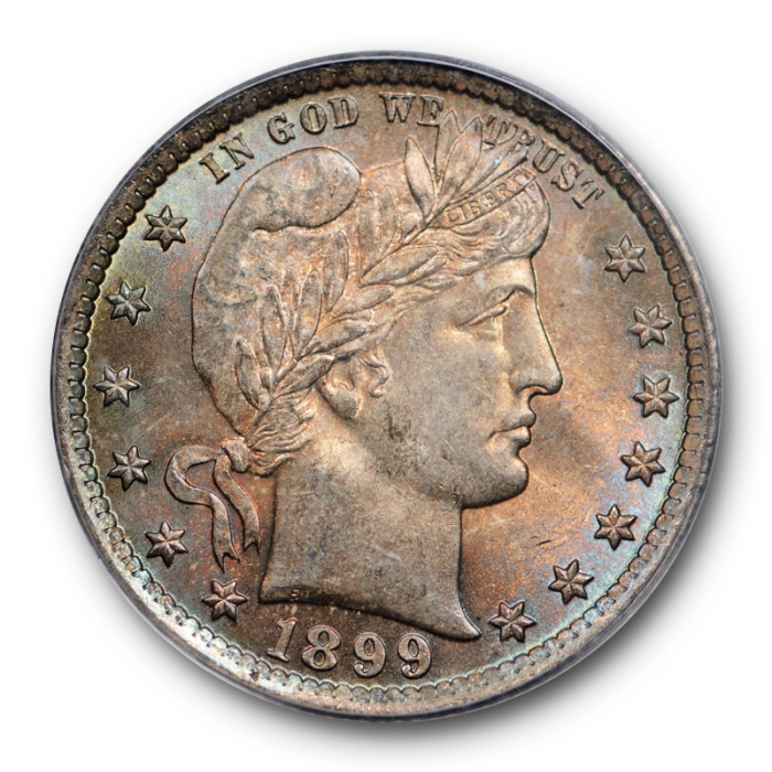 Description / 1899 25C Barber Quarter PCGS MS 63 Uncircualted Colorful Toned Beauty