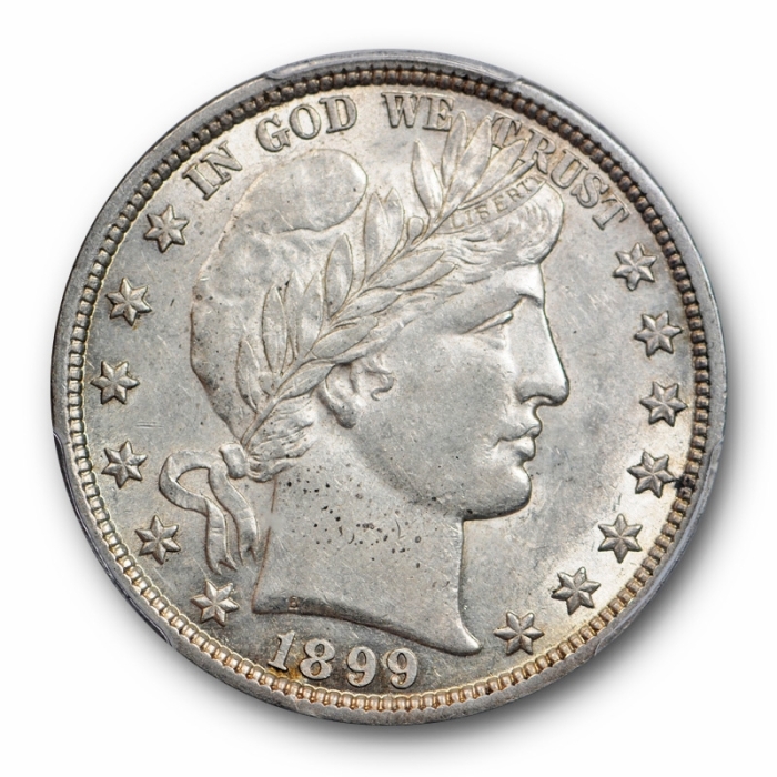Description / 1899 50C Barber Half Dollar PCGS AU 55 About Uncirculated Exceptional Strike