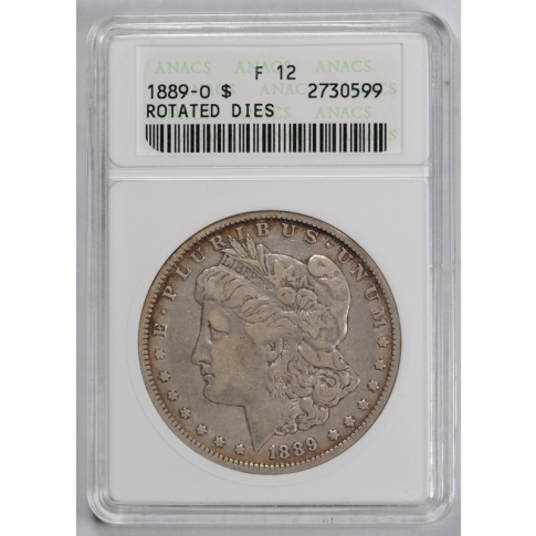 Description / 1899-O $1 Morgan Dollar ANACS F 12 Fine Rotated Dies Mint Error US Coin