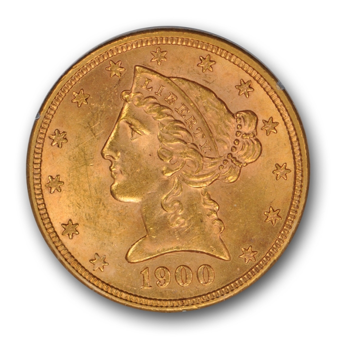 Description / 1900 Half Eagle Liberty Gold Piece $5 PCGS MS 60 Undergraded Old Rattler Holder