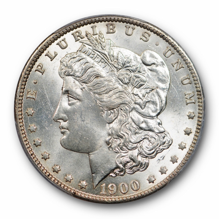 Description / 1900 O/CC $1 Morgan Dollar PCGS MS 63 Uncirculated Over Mint Mark Lustrous