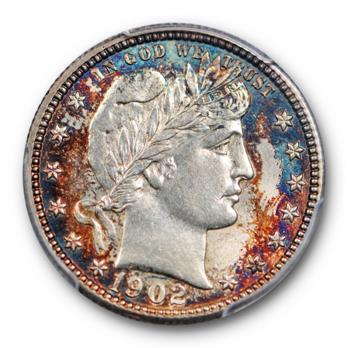 1902 25C Barber Quarter PCGS MS 63 Uncirculated Rainbow Toned Beautiful