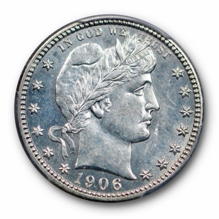 Description / 1906 D 25C Barber Quarter PCGS MS 62 Uncirculated Blast White Looks PL ! Stunning
