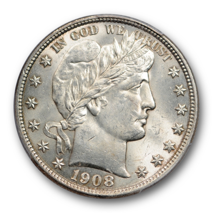 Description / 1908 D 50C Barber Half Dollar PCGS MS 63 Uncirculated Denver Mint Sharp