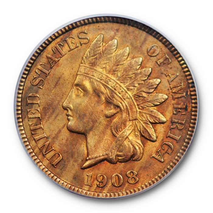 Description / 1908 S 1C Indian Head Cent PCGS MS 64 RB Uncirculated Key Date !