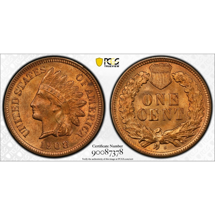 Description / 1908 S 1C Indian Head Cent PCGS MS 64 RD Uncirculated Full Red Key Date Tough !