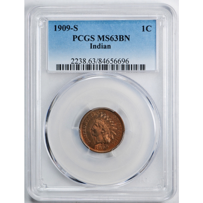 Description / 1909 S 1C Indian Head Cent PCGS MS 63 BN Uncirculated Exceptional Strike / Original
