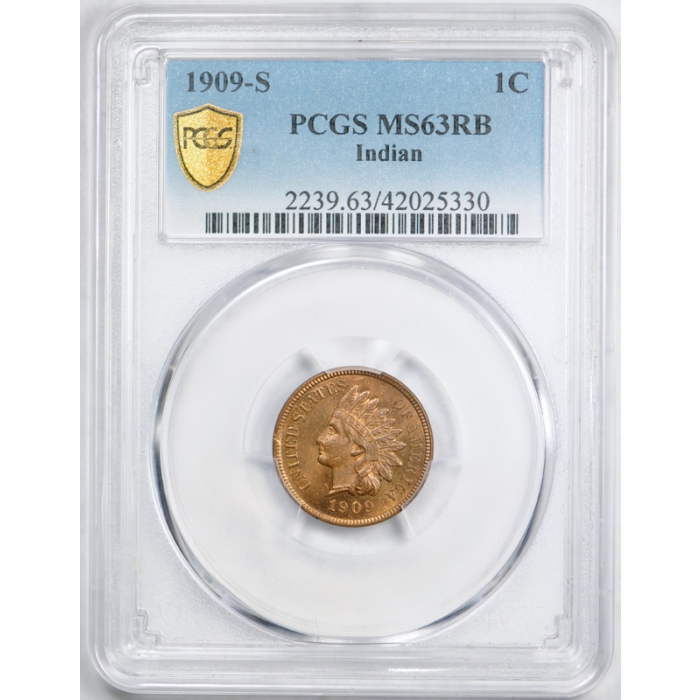 1909 S 1C Indian Head Cent PCGS MS 63 RB Uncirculated Red Brown Key Date Nice !
