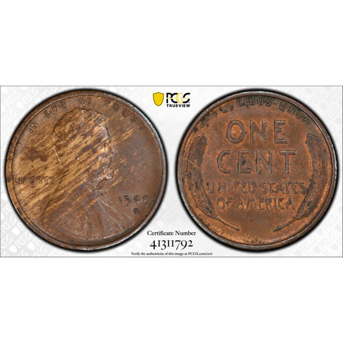Description / 1909 S VDB 1C Lincoln Wheat Cent PCGS AU 53 About Uncirculated Key Date Wood Grain