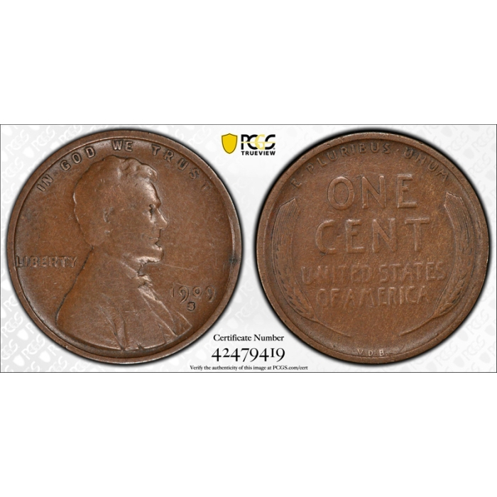 Description / 1909 S VDB 1C Lincoln Wheat Cent PCGS F 12 Fine San Francisco Mint Key Date