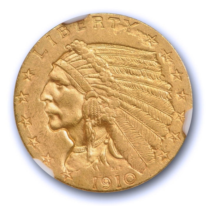 Description / 1910 $2.5 Indian Head Gold Piece NGC MS 62 Uncirculated Rich Gold Patina Nice !