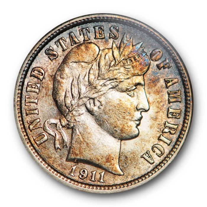 Description / 1911 10C Barber Dime ANACS AU 58 About Uncirculated Toned Old Holder