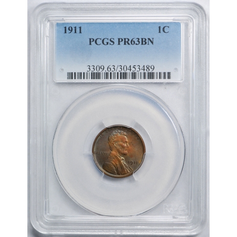 1911 1C Proof Lincoln Wheat Cent PCGS PR 63 BN Brown Pretty Toned !