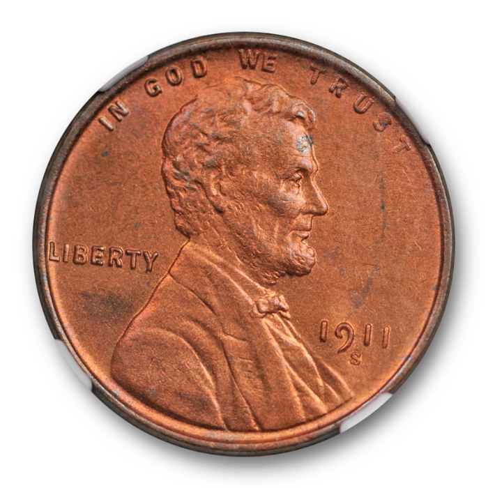 Description / 1911 S 1c Lincoln Wheat Cent NGC MS 64 RB Uncirculated Red Brown Attractive