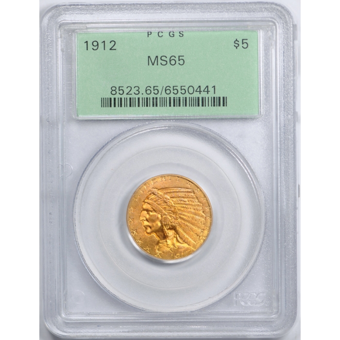 1912 $5 Indian Head Half Eagle PCGS MS 65 Uncirculated OGH Exceptional Coin !
