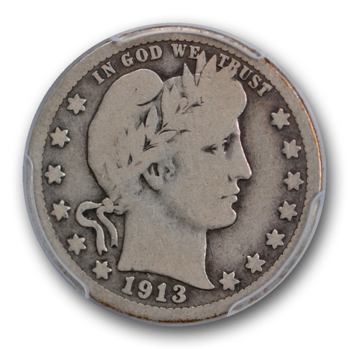 Description / 1913-S 25C Barber Quarter PCGS VG 8 Very Good Full Rims San Francisco
