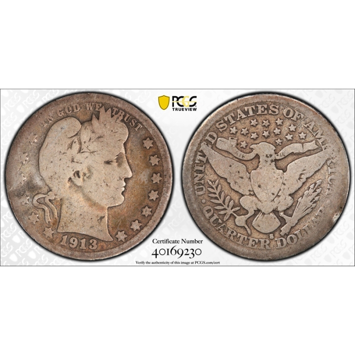 Description / 1913 S 25C Barber Quarter PCGS AG 3 About Good Key Date Looks Better !