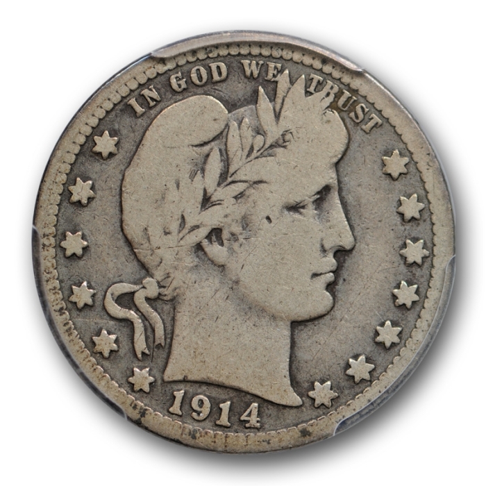 Description / 1914 S 25C Barber Quarter PCGS VG 8 Very Good Full Rims Original Key Date