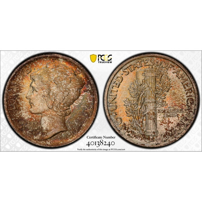 Description / 1916 10C Mercury Dime PCGS MS 67 FB Uncirculated Full Band Toned Pretty !
