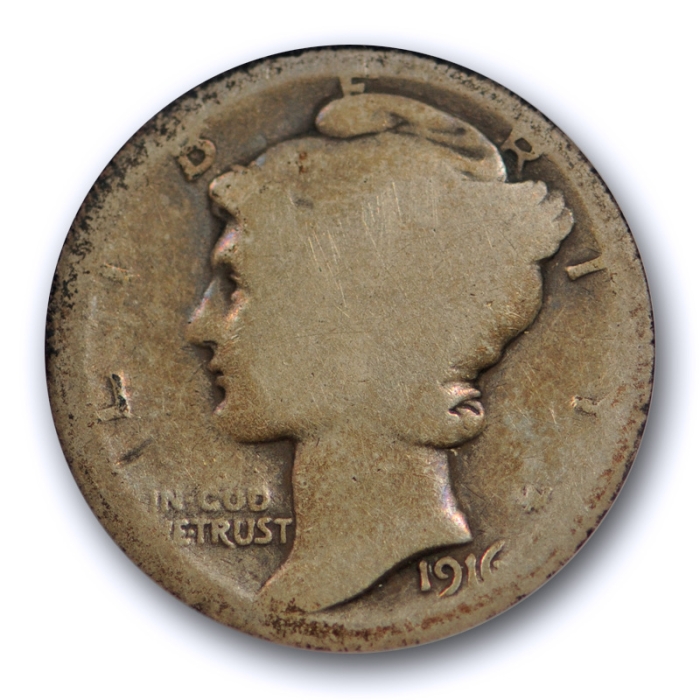 1916 D 10C Mercury Dime ANACS FR 2 Fair Grade Denver Mint Key Date Filler Grade