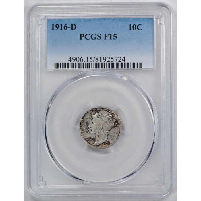 1916-D 10C Mercury Dime PCGS F 15 Fine to Very Fine Key Date Cert5724