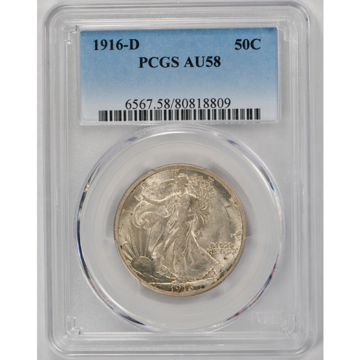 Description / 1916-D 50C Walking Liberty Half Dollar PCGS AU 58 Registry Set Grade