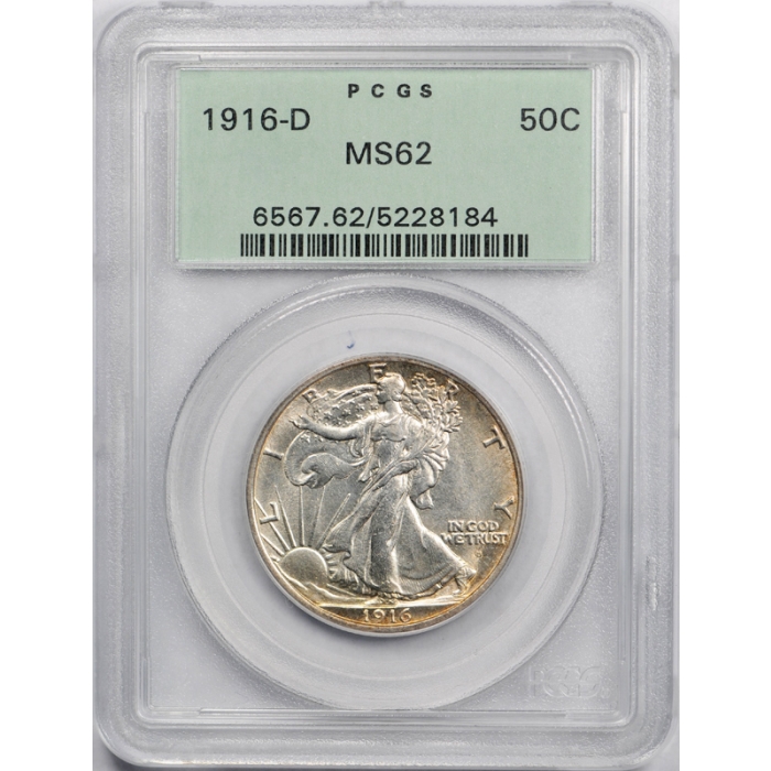 1916 D 50C Walking Liberty Half Dollar PCGS MS 62 OGH Undergraded ! Nice !