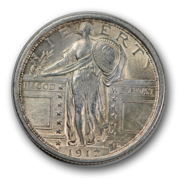 Description / 1917 25C Type 1 Standing Liberty Quarter About Uncirculated + Full Head R1377