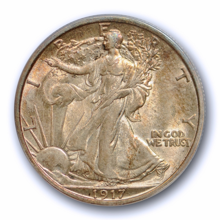 1917 50C Walking Liberty Half Dollar ANACS AU 58 About Uncirculated Toned Original