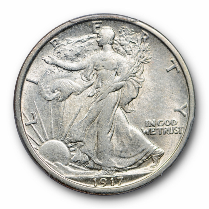 Description / 1917 D 50C Reverse Walking Liberty Half Dollar PCGS AU 53 About Uncirculated