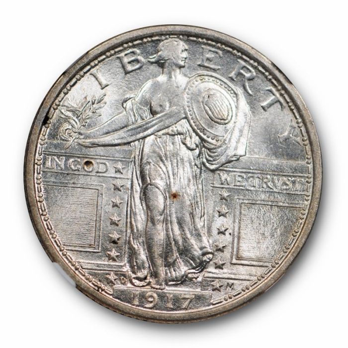 Description / 1917 D Type One Standing Liberty Quarter NGC MS 64 Uncirculated Lustrous