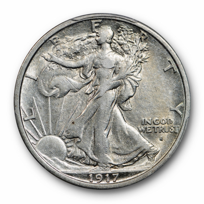 Description / 1917 S 50C Obverse Walking Liberty Half Dollar PCGS AU 53 About Uncirculated