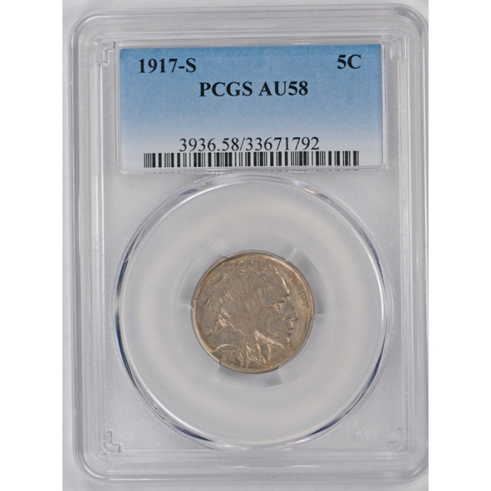 1917-S 5C Buffalo Nickel PCGS AU 58 About Uncirculated to MS Tough