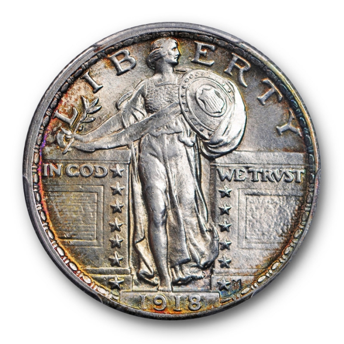 1918 25C Standing Liberty Quarter PCGS MS 62 Uncirculated Toned Sharp Strike