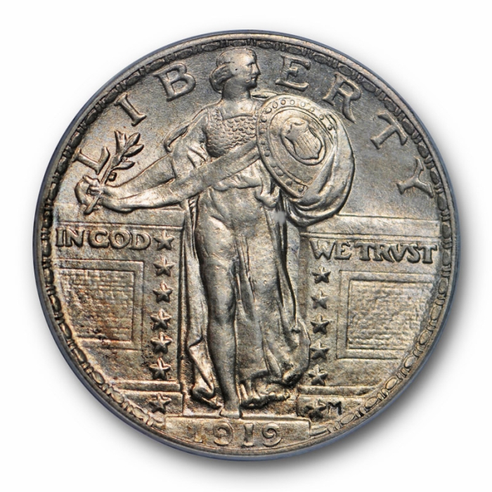 Description / 1919 25C Standing Liberty Quarter PCGS AU 58 About Uncirculated Original