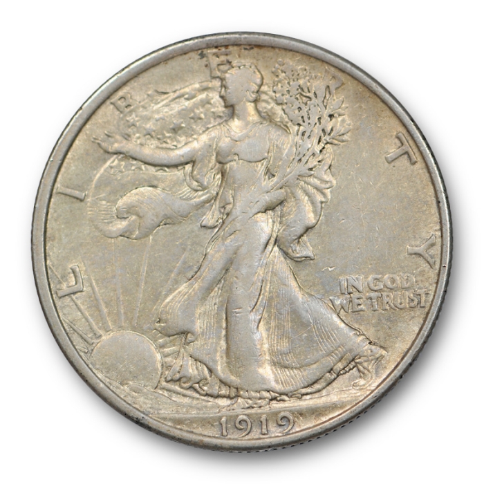 1919 50C Walking Liberty Half Dollar AU About Uncirculated Better Date Tough Grade !