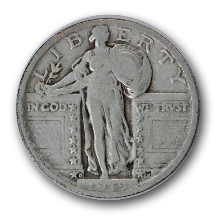 Description / 1919-D 25C Standing Liberty Quarter Very Fine to Extra Fine Strong Date R654