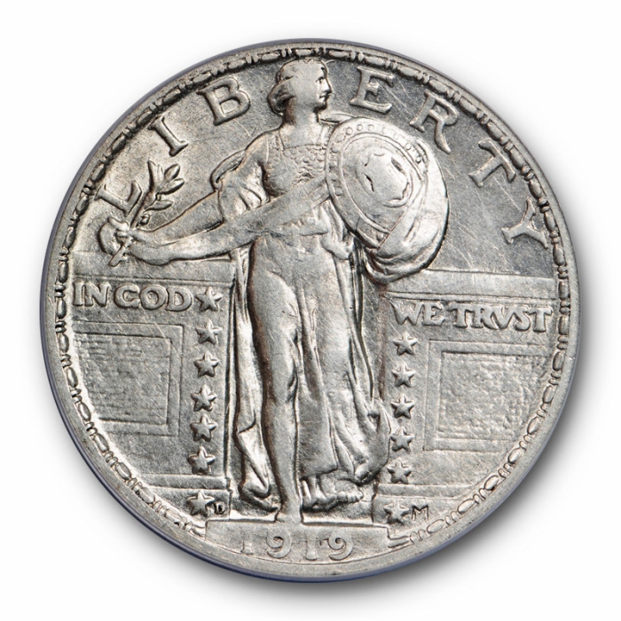 Description / 1919 D 25C Standing Liberty Quarter ANACS AU 50 About Uncirculated Tough