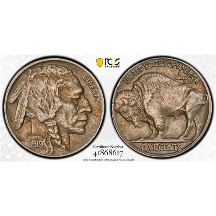 Description / 1919 D 5C Buffalo Head Nickel PCGS XF 45 Extra Fine to About Uncirculated Sharp !