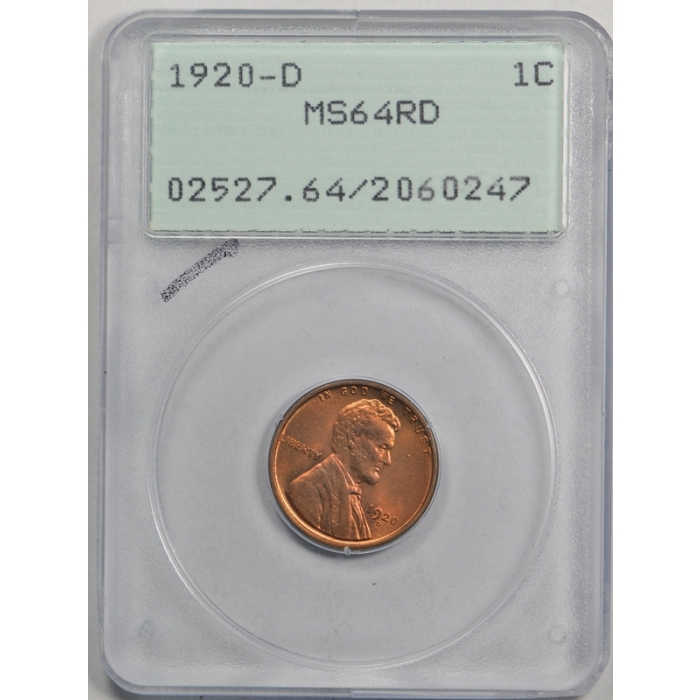 1920 D 1C Lincoln Wheat Cent PCGS MS 64 RD Red Rattler Holder
