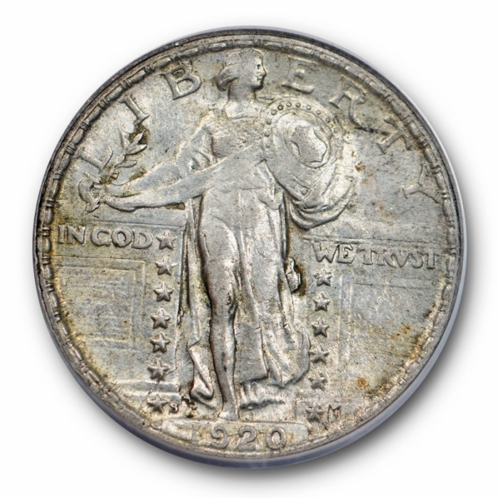 Description / 1920-S 25C Standing Liberty Quarter ANACS AU 53 Teardrop Break Variety