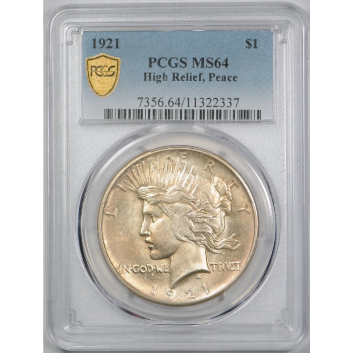 1921 $1 Peace Dollar High Relief PCGS MS 64 Uncirculated Key Date Cert#2337